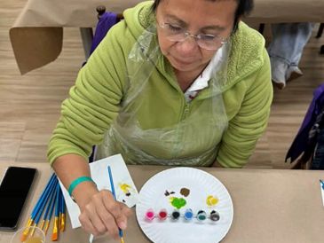 Participants paint a peaceful piece of art representing renewal, joy, and inner calm — a visual reminder they can take home.